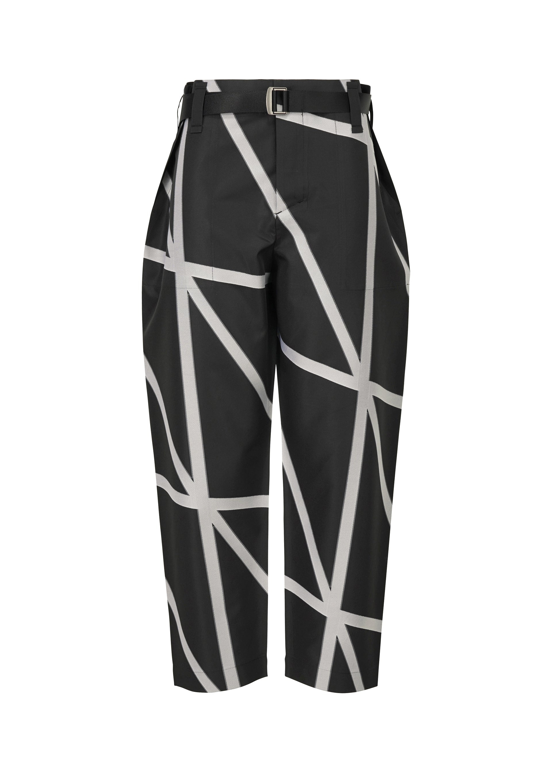 These pants are woven in jacquard with a pattern based on "NO. 5," one of the basic fold structures of the 132 5. brand.The waist can be adjusted with the included belt.