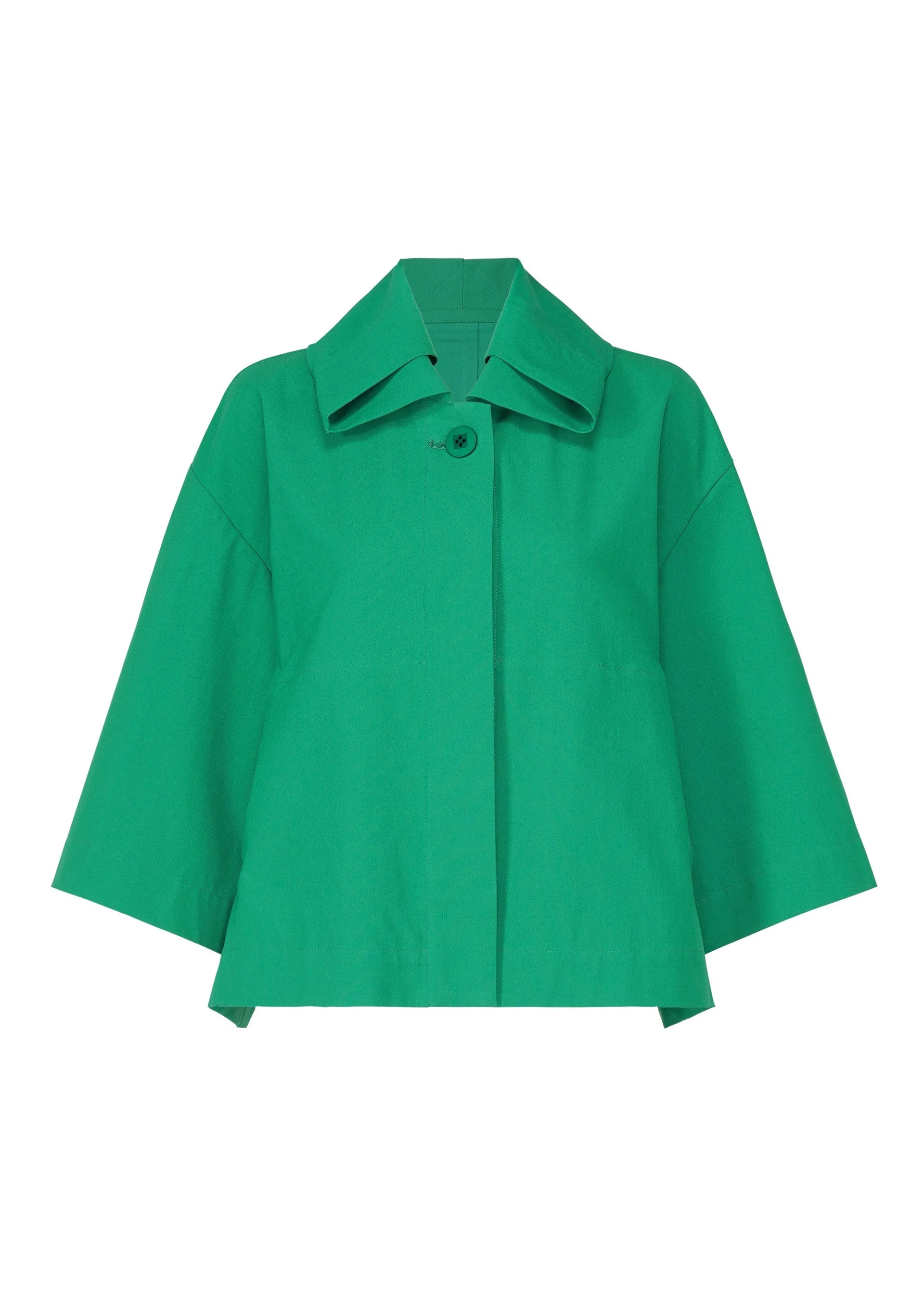 This jacket is characterized by its stretchy textile made with Japanese Washi paper. It uses cotton threads in the warp as well as Washi threads and woolly polyester threads in the weft to achieve both the distinctive texture and softness characteristic of Washi. Product Information Material: 56% cotton, 24% unclassified fiber (Japanese paper), 20% polyester Country of origin: Japan neckline/collar:regular color Front opening:Hiyoku button Pocket (position):both sides