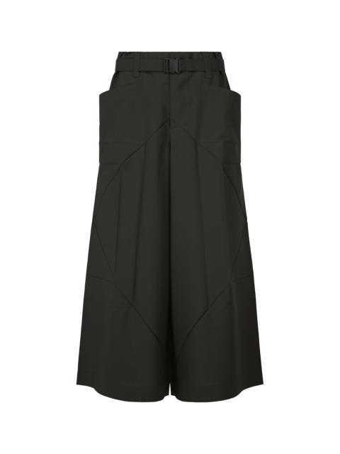 These pants can be folded flat. They have a three-dimensional silhouette when worn due to the design with tucks. The material is made from recycled polyester that is given a wool-like finish. Product Information Material: 100% polyester Made in Japan Waist specifications:Integrated belt Pocket (position):Both sides