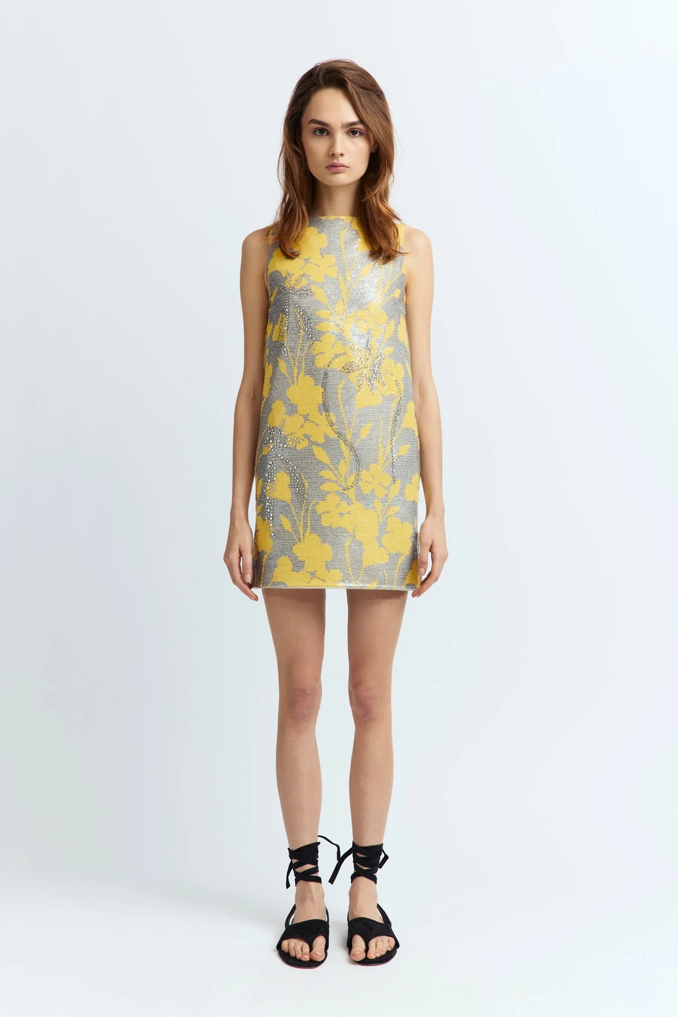 The Alessa Dress is a backless mini dress with a subtle A-line silhouette, fastening with a contrast tie at the back of the neck. Sleeveless and falling above the knees, it features an all-over floral sequin pattern with a custom crystal hotfix applique at the front. Cut for a close fit, it offers a refined yet statement-making look. MORE DETAILS Designed for a regular fit. The model is 5'11" (180cm) and wears a UK 8. - Outer: Polyester 100% - Lining: Polyester 100% - Care: Specialist Dry Cleaning Only - Made in Portugal Style number: D-MN-578-SS25-03