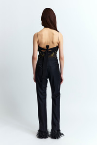 The Amati Top is a semi-sheer camisole with thin spaghetti straps, accented by citrine-colored hotfix crystal embellishments in a custom floral pattern. A ruched panel at the bust extends into ties at the back, adding subtle structure to the fluid design. MORE DETAILS Designed for a slim fit. The model is 5'9.5" (176cm) and wears a UK 8. - Outer: Polyester 100% - Lining: Recycled Polyester 100% - Care: Specialist Dry Cleaning Only - Made in Portugal Style number: T-377-SS25-01