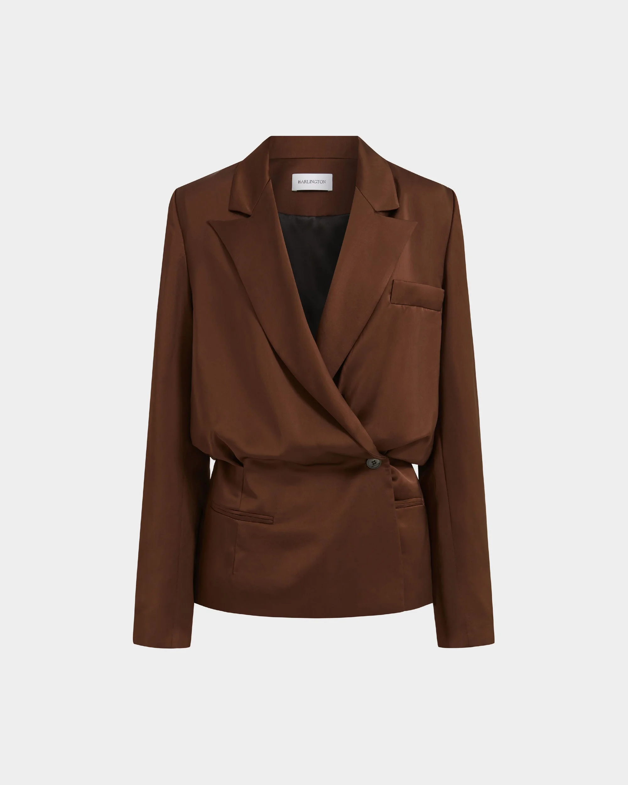 The Ardo Jacket in satin is a collared blazer featuring ruched detailing and a cinched waist, fastening at the front with a button. It includes a breast pocket for a refined touch and can be worn with the matching Argo Trouser for a coordinated look. MORE DETAILS Designed for a regular fit. The model is 5'9.5" (176cm) and wears a UK 8. - Outer: Polyester 100% - Lining: Recycled Polyester 100% - Care: Hand wash or dry clean - Made in Portugal Style number: J-113-SS25-02