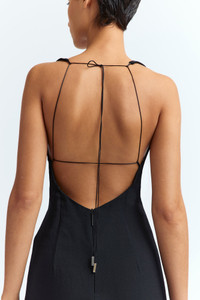 The Alba Dress is a halter neck mini dress with a deep V plunge neckline that falls above the knees. It is designed to fit close to the body and fastens with a string across the back MORE DETAILS Designed for a slim fit. The model is 5'11" (180cm) and wears a UK 8. - Outer: 100% Polyester - Lining: 100% Recycled Polyester - Care: Cool wash or Dry clean - Made in Portugal Style number: D-533-SS25-2