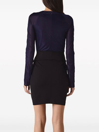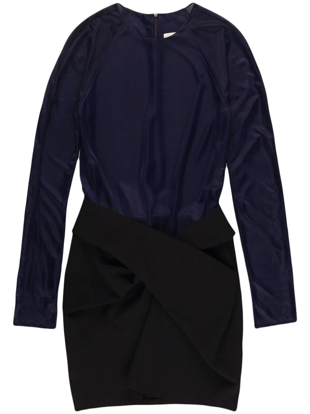 Tevra mini dress The Tevra mini dress by 16ARLINGTON beautifully showcases the brand's luxury and exceptional artisanship. Its stunning black and navy blue colour scheme is enhanced by a charming gathering detail at the hip. Highlights - Navy blue/black - Faux leather - Gathering at the hip - Round neck - Long sleeves - Rear zip fastening - Straight hem Made in United Kingdom Composition Polyester 100%, Viscose 64%, Nylon 33%, Polyurethane 3%