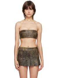 Grained leather tube top. Fading and boning throughout. · Straight neck · Cropped hem · Zip closure at back · Full plain-woven lining Supplier color: Sand/Cracked black Body: 100% leather. Lining: 100% polyester. Made in United Kingdom 231427F111001