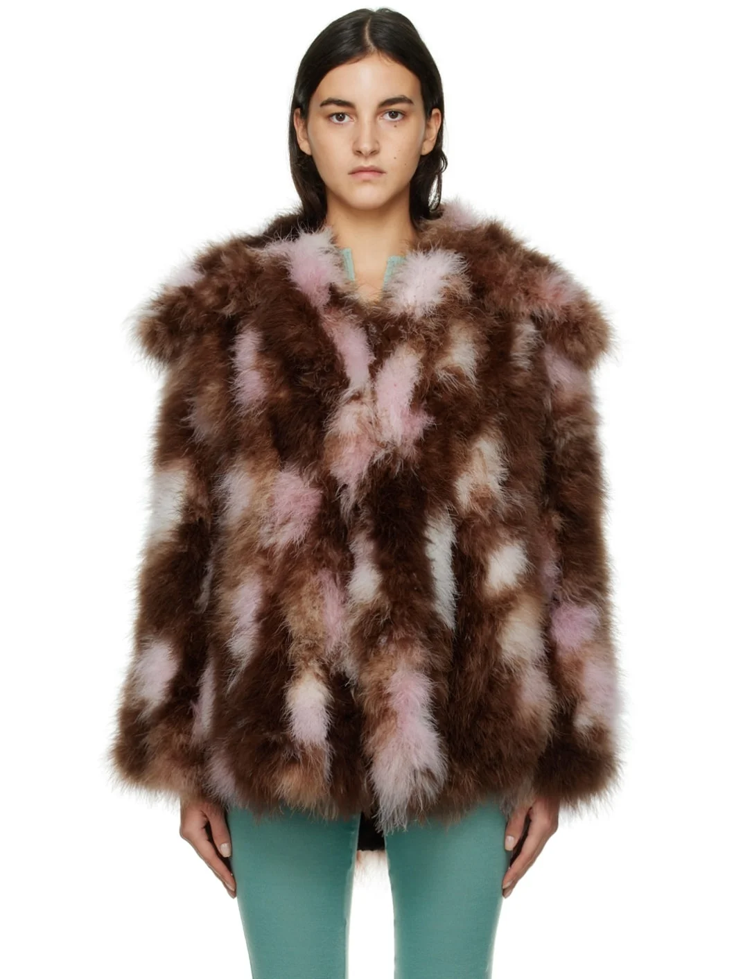 Brown & Pink Genoa Feather Coat