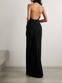 EDITORS'NOTES Padded, petal-like overlays give 16ARLINGTON's 'Casini' gown a dramatic, pannier-inspired shape - they wrap around the hips and fall elegantly as a train. It's made from crepe in timeless black. SIZE & FIT Model measurements: - Fits true to size, take your normal size - Designed for a slim fit - Mid-weight, non-stretchy fabric - Model is 177cm/ 5'10" and is wearing a UK 8 - Bust: 81cm/ 32" - Waist: 64cm/ 25" - Hip: 89cm/ 35" DETAILS & CARE - Black crepe - Concealed hook and zip fastening at back - 100% polyester; lining: 100% recycled polyester - Dry clean