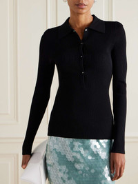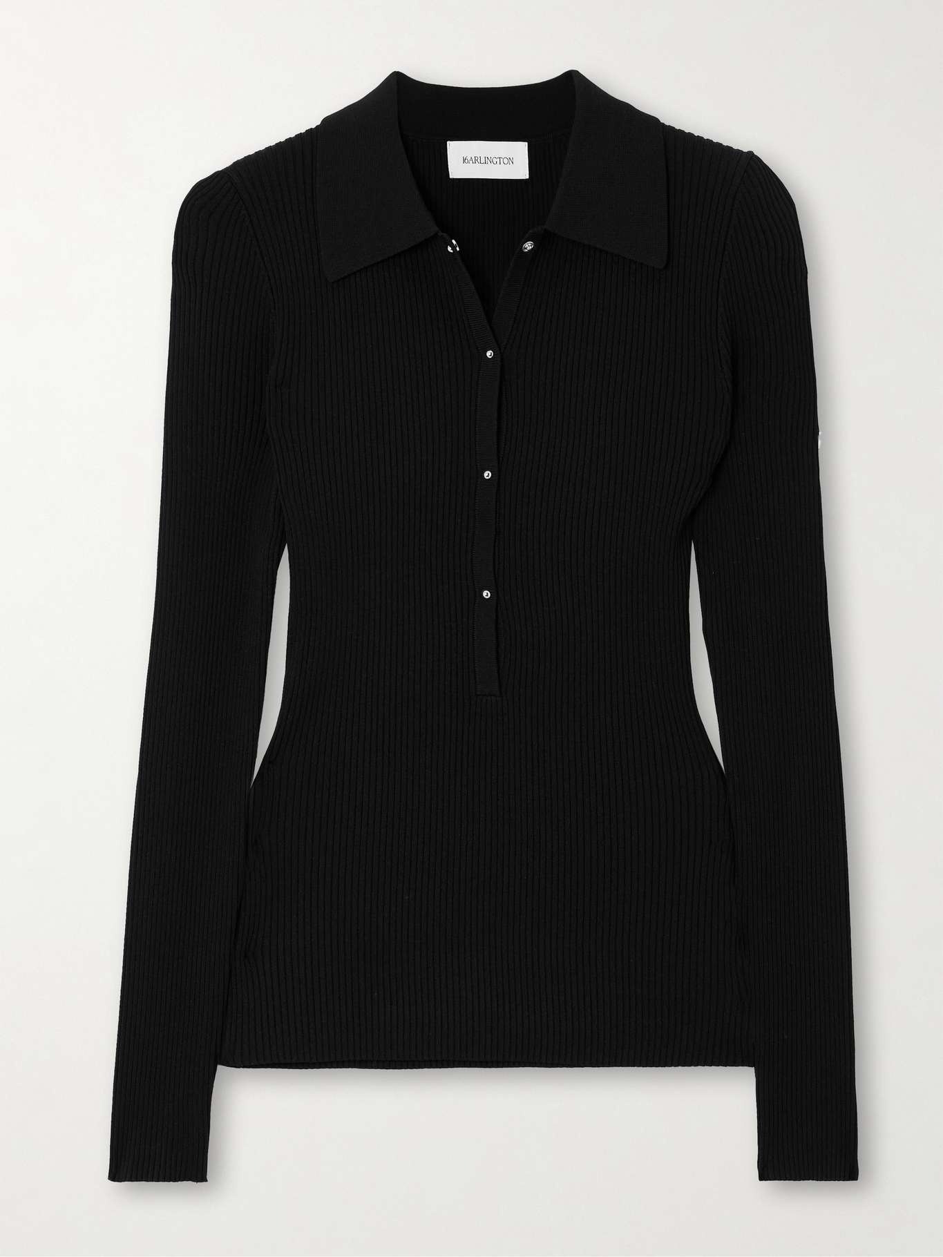 16ARLINGTON's 'Cisca' sweater is rib-knitted for a slim fit and has a neat polo collar. Wear yours with jeans or tailoring, leaving the first few buttons undone for the coolest take. Size & Fit - Fits true to size, take your normal size - Designed for a slim fit - Lightweight knit - Model is 180cm/ 5'11" and is wearing a size Small Model measurements: - Bust: 85cm/ 33.5" - Waist: 62cm/ 24.5" - Hip: 88cm/ 34.5" Details & Care - Black ribbed-knit - Snap fastenings through front - 77% viscose, 23% nylon - Dry clean