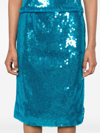 Delta sequinned midi skirt Highlights - Cyan blue - Sequin design - High waist - Concealed rear hook and zip fastening - Straight hem - Mid-length - Cotton lining Made in United Kingdom Composition Lining: Cotton 100% Outer: Polyester 100% SIZE & FIT Model measurements Height 5 ft 10 in(1.77 m) Bust/Chest 33.07 in(84 cm) Hips 37 in(94 cm) Waist 24.8 in(63 cm) FittingInformation This midi-length skirt is intended to be worn just below the waist Made from a midweight non-stretch fabric This piece fits true to size – take your usual size
