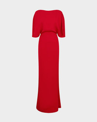 The Dona Gown is a fluid, floor length silhouette cut from smooth crepe, offering both structure and movement. It features short, cape like sleeves that fall softly over the shoulders and a tapered waist that defines the form. MORE DETAILS Designed for a regular fit. The model is 5'10" (178cm) and wears a UK 8. - Composition: 100% Polyester - Care: Machine wash cool or dry clean - Made in Portugal. Style number: G-090-AW25-02