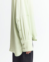 The Elda Top is a button-down shirt cut from satin backed crepe in soft pistachio green, offering a gentle sheen and fluid drape. It features an exaggerated collar that sharpens the silhouette, bringing a refined edge to an otherwise understated shape. MORE DETAILS Designed for an oversized fit. The model is 5'10" (178cm) and wears a UK 8. - Composition: 100% Viscose - Care: Dry clean only - Made in United Kingdom. Style number: T-391-AW25-03