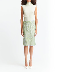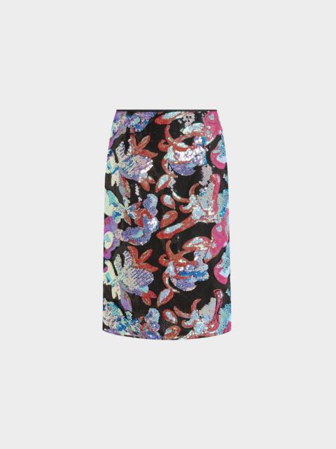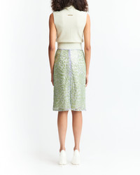 Elice Midi Skirt features a pistachio green sequin print layered over a soft lilac lace base, creating a contrast of colour and texture. Falling to mid-calf, it fastens with a back zip for a streamlined finish. MORE DETAILS Designed for a slim fit. The model is 5'10" (178cm) and wears a UK 8 - Main: 100% Polyester - Lining: 100% Viscose - Care: Dry cleaning only, iron on a low temperature - Made in Great Britain Style number: S-MD-177-AW25-02