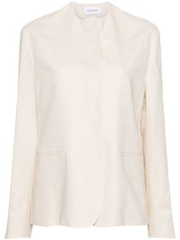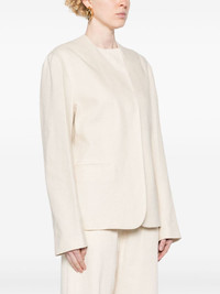 Erra single-breasted jacket Highlights - Light beige - Round neck - Concealed front press-stud fastening - Long sleeves - Two side welt pockets - Full lining - English rear vents - Straight hem Made in United Kingdom Composition Outer: Rayon 55%, Linen/Flax 45% Lining: Viscose 100% SIZE & FIT Model measurements Height 5 ft 9 in(1.75 m) Bust/Chest 34.64 in(88 cm) Hips 36.61 in(93 cm) Waist 26.37 in(67 cm) FittingInformation Designed for a slim fit that sits just away from the body offering a close yet comfortable fit The vented hem offers movement at the rear Made from a midweight non-stretch fabric This piece fits true to size – take your usual size