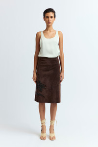 The Gilda Top is a scoop-neck, sleeveless design cut from lustrous satin in misty pale blue. Designed for a loose fit, it drapes effortlessly over the body and falls to the hips. The satin fabric enhances its smooth, fluid silhouette. Also available in brown and yellow. MORE DETAILS Designed for a relaxed fit. The model is 5'11" (180cm) and wears a UK 8. - Outer: Polyester 100% - Care: Hand wash or dry clean - Made in Portugal Style number: T-381-SS25-03