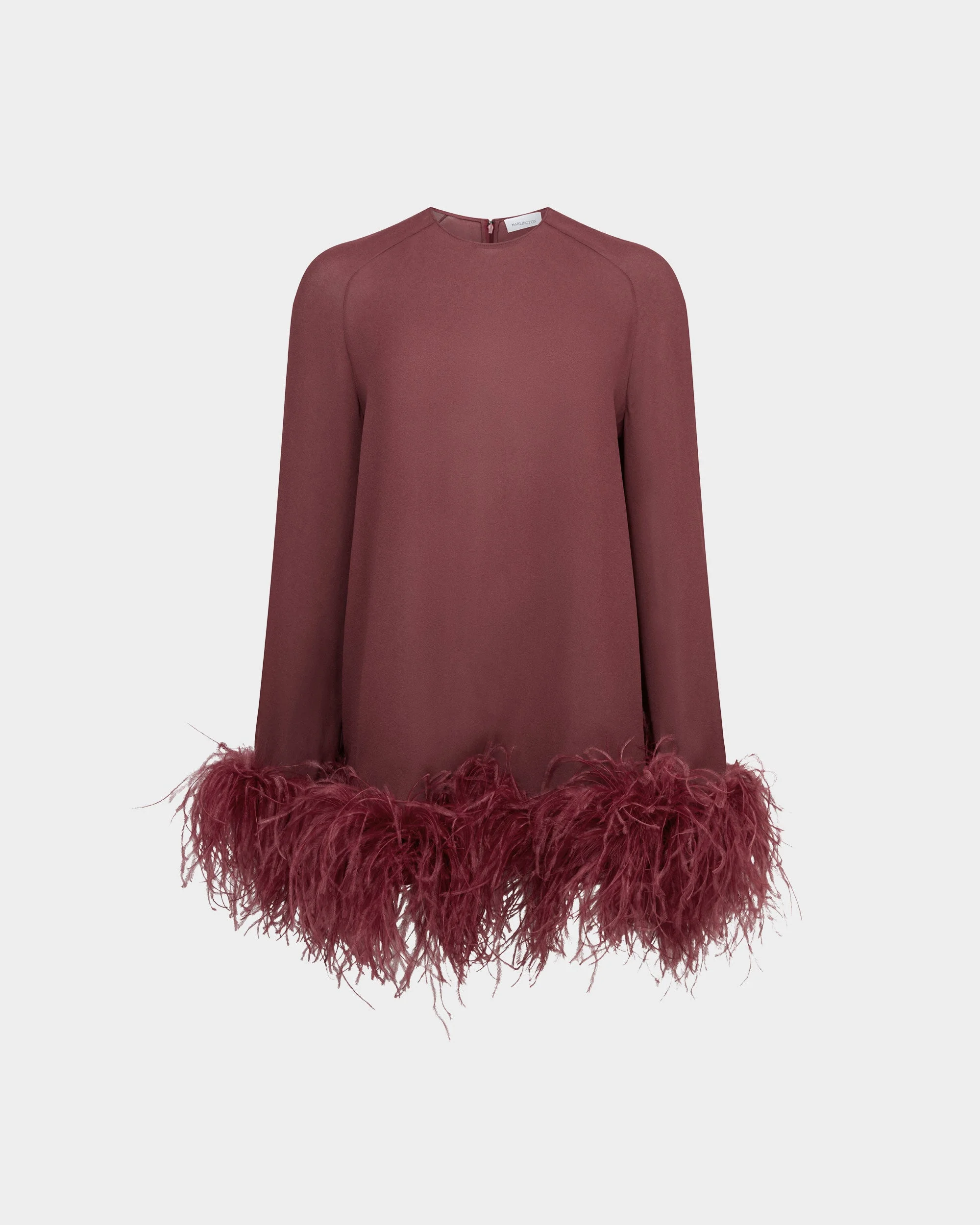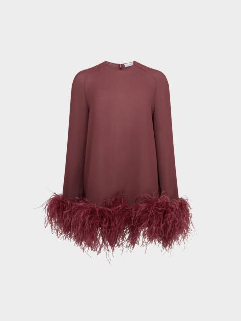 The Hodi Mini Dress is a relaxed, long-sleeved silhouette in semi-sheer georgette designed for ease and movement. Cut in a loose fit, it’s finished with feathered detailing at the wrists and hem, bringing playful volume and tactile contrast to its fluid shape. MORE DETAILS Designed for a relaxed fit. The model is 5'10" (178cm) and wears a UK 8. - Main: 100% Viscose - Trim: 100% Ostrich Feather - Care: Professional dry clean only - Made in Portugal. Style number: D-MN-635-AW25-02