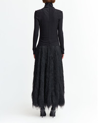 Itta Midi Dress is a two-part design combining a T-shirt-style top and A-line skirt. The top, cut from soft merino wool, features a fitted roll neck and long sleeves, while the skirt in feathered tassel fabric adds movement and texture. MORE DETAILS Designed for a slim fit. The model is 5'11" (180cm) and wears a UK 8 - Main: 100% Polyester - Lining: 100% Recycled Polyester - Care: Dry cleaning only, iron a low temperature - Made in Portugal Style number: D-MD-672-AW25-01