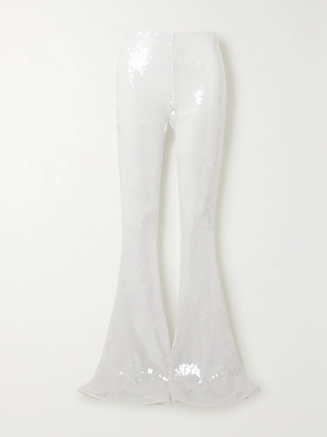 Be a thoroughly modern bride in 16ARLINGTON's dramatic 'Koro' flared pants. Made from white tulle, every inch is covered in translucent sequins that'll shimmer as you walk down the aisle, toast your guests and dance until the small hours.