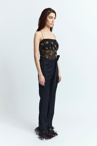 The Maura Trouser is a slim-fit, tailored design cut from lightweight wool. It features a waist tie finished with a double-stitched border, a center crease, and front pockets at the hips. Designed to hit at the ankles, it offers a refined yet versatile silhouette. MORE DETAILS Designed for a slim fit. The model is 5'9.5" (176cm) and wears a UK 8. - Outer: Virgin Wool 100% - Care: Specialist Dry Cleaning Only - Made in United Kingdom Style number: TR-109-SS25-01