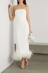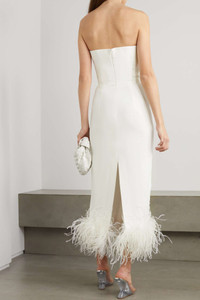 16ARLINGTON's 'Minelli' dress will make such a beautiful bridal look, as well as party piece. Cut from crepe to hug your frame, it has a strapless silhouette supported by internal boning and is trimmed with wispy feathers around the split hem. Add the finishing touch to your look with a diamond choker and earrings. Size & Fit - Fits large to size, take one size smaller than normal - Designed for a slim fit - Lightweight, non-stretchy fabric with feather trim - Model is 177cm/ 5'10" and is wearing a UK 8 Details & Care - White crepe and feathers - Concealed zip fastening along back - 100% polyester; lining: 100% polyester; trim: 100% feathers (Ostrich) - Dry clean - Ostrich: South Africa Large to size. See Size & Fit notes.