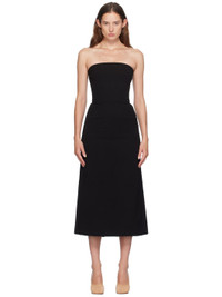 Polyester crepe dress. · Straight neck · Boning at bodice · Zip closure and pleats at back · Full recycled polyester sateen lining Supplier color: Nero Body: 100% polyester. Lining: 100% recycled polyester. Made in United Kingdom 242427F054003
