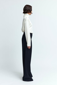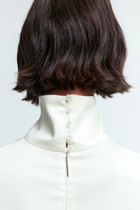 The Olall Top in off white features a sleek funnel neck and long sleeves, crafted from satin crepe for a fluid drape. A concealed zip at the back extends to the neckline for a secure fit. Also available in sequin and textured tassel. MORE DETAILS Designed for a relaxed fit. The model is 5'10.5" (178cm) and wears a UK 8. - Outer: 100% Polyester - Care: Hand wash only - Made in Portugal Style number: T-320-SS25-3