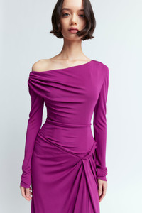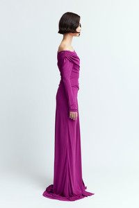 The Polyta Gown in pink is a one shoulder, floor length dress. It features long sleeves and has an asymmetrical neckline. The gown includes subtle ruching and has a pleated detail along the hip to add a draped effect to the dress. It can be fastened up at the side with a zip and this dress is also available in black MORE DETAILS Designed for a slim fit. The model is 5'10.5" (178cm) and wears a UK 8. - Outer: 100% Viscose - Care: Cool wash or Dry clean - Made in Portugal Style number: G-072-SS25-2