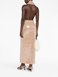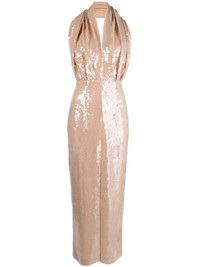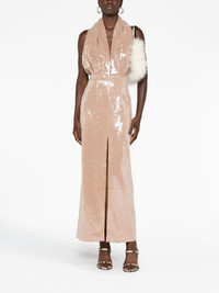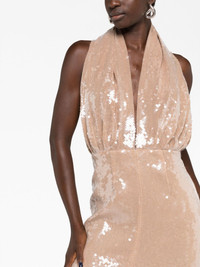 sequin-embellished plunge dress This 16Arlington plunge dress is imbued with high-octane energy. Cut to a halterneck silhouette with an open back, light-catching sequins embellish the ankle-length design. Highlights - Beige - Sequin embellishment - Plunge style - Halterneck - Sleeveless - Open back - Front slit - Ankle-length Imported Composition Lining: Nylon 95%, Spandex/Elastane 5% Outer: Nylon 95%, Spandex/Elastane 5% SIZE & FIT Model measurements Height 5 ft 10 in(1.77 m) Bust/Chest 32.28 in(82 cm) Hips 35.03 in(89 cm) Waist 25.19 in(64 cm)