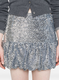 sequinned bubble-hem mini skirt Highlights - Silver-tone - Sequin embellishment - Bubble hem - Mini length - This piece features very delicate detailing. handle with extreme care to avoid damage such as broken feathers or loss of sequins. Imported Composition Sequin 100% Outer: Polyester 100% Lining: Recycled Polyester 100% SIZE & FIT Model measurements Height 5 ft 9 in(1.75 m) Bust/Chest 34.64 in(88 cm) Hips 36.61 in(93 cm) Waist 26.37 in(67 cm) Washing instructions Read Manufacturer Guidelines