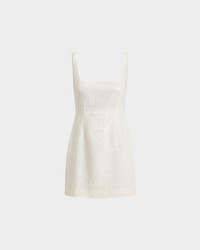 The Sior Mini Dress in white a signature 16Arlington silhouette, crafted from lightweight linen with sequin embellishments throughout. Tailored for a slim fit, it features a square neckline and thin shoulder straps, offering a clean, structured finish. MORE DETAILS Designed for a slim fit. The model is 5'9.5" (176cm) and wears a UK 8. - Composition: 100% Polyester - Care: Specialist Dry Cleaning Only - Made in Portugal Style number: D-MN-560-AW25-HS-C-02