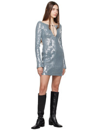 Sequinned stretch nylon mesh dress. · Boatneck · Bungee-style fastening at keyhole cutout · Vent at extended cuffs · Zip closure at back · Fully lined · Logo-engraved silver-tone hardware Supplier color: Dolphin
