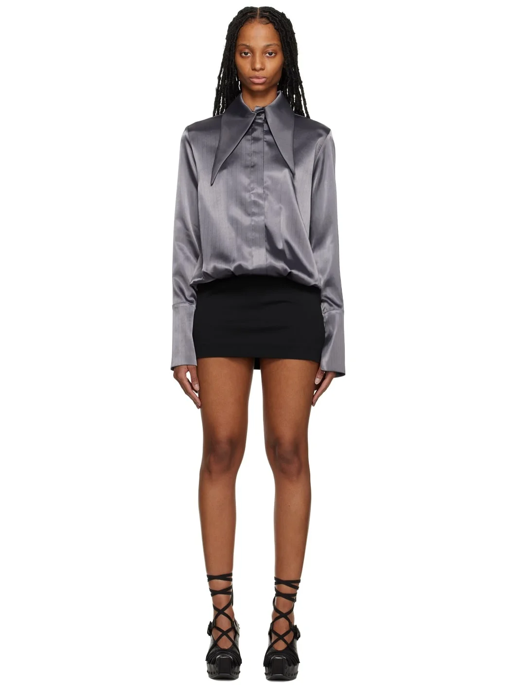 Stretch polyester satin and stretch viscose-blend jersey dress. Stripes throughout. · Modified spread collar · Button closure · Gathering at waist · Vented cuffs · Box pleat at back yoke Part of the SSENSE exclusive Work Capsule. Supplier color: Mauve/Black Body 1: 97% polyester, 3% elastane. Body 2: 64% viscose, 33% polyamide, 3% polyurethane. Made in United Kingdom 231427F052006