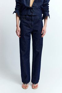 The Vante Jean is a straight-leg denim trouser featuring a 16Arlington leather patch on the back waistband. Designed with five pockets—three at the front and two at the rear—it offers a clean, structured silhouette. Slightly tapered at the bottom with center front darts, it creates a refined shape. Styled with the matching Ada Denim Jacket for the SS25 runway show. MORE DETAILS Designed for a regular fit. The model is 5'9.5" (176cm) and wears a UK 8. - Outer: Cotton 58% Lyocell 42% - Care: Machine wash - Made in Portugal Style number: TR-087-SS25-01