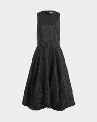 Tansi Midi Dress features a sleek A-line silhouette in black, crafted from shimmering tinsel-like fabric that catches the light with movement. The sleeveless bodice has a round neckline, while the skirt is finished with a bubble hem that falls shorter at the front. The dress sits at mid-calf and fastens with an invisible back zip for a clean finish. MORE DETAILS Designed for a regular fit.The model is 5'11" (180cm) and wears a UK 8 - Main: 53% Viscose, 34% Polyester, 13% Polyamide - Lining: 100% Recycled Polyester - Care: Dry cleaning only, iron a low temperature - Made in Great Britain Style number: D-MD-660-AW25-01