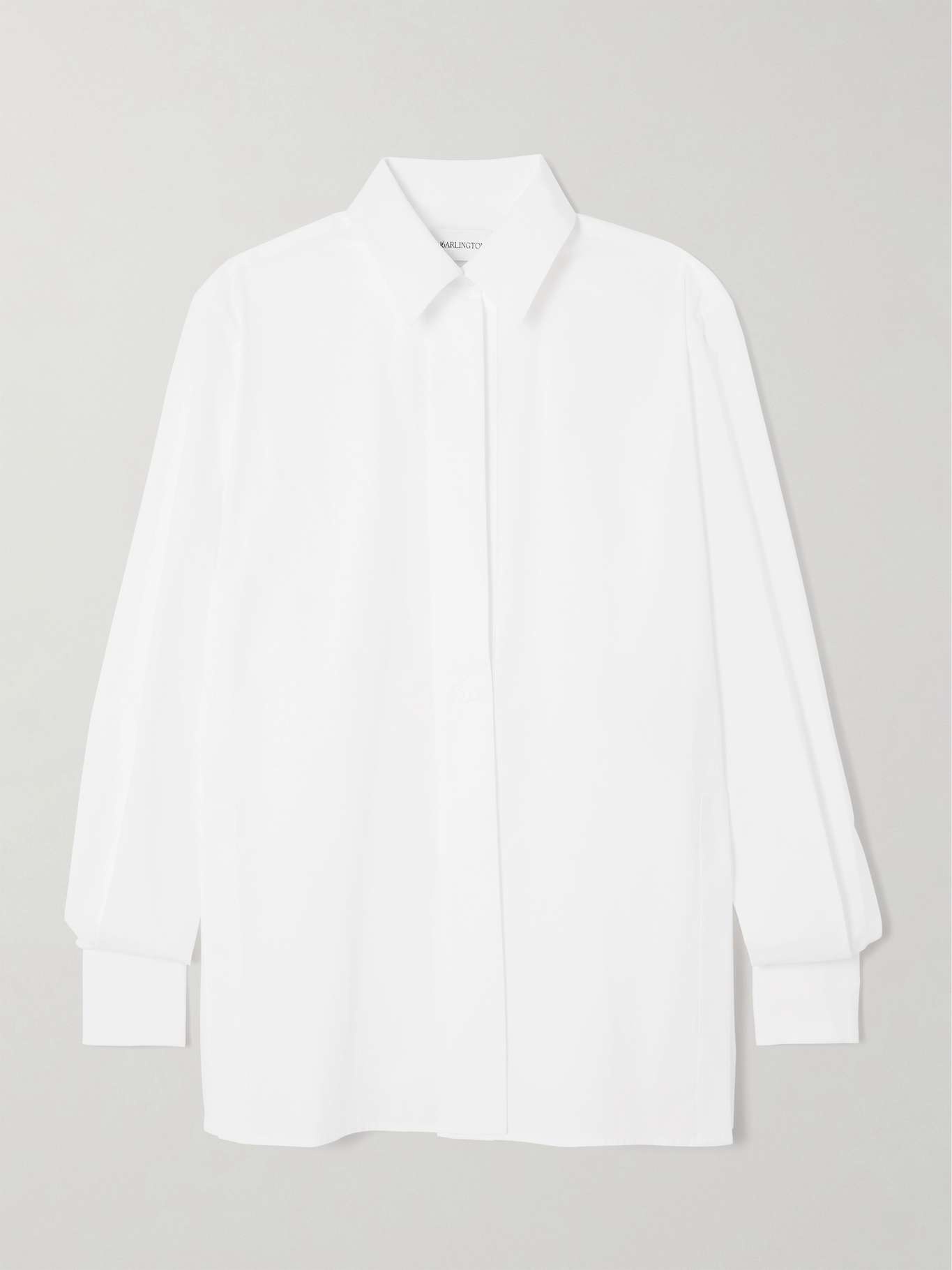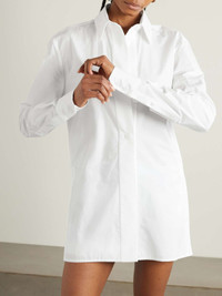 EDITORS'NOTES 16Arlington's 'Teverdi' shirt opened the Spring '24 runway show - it was worn unbuttoned to show off its tailored, yet relaxed, shape. It's cut from crisp cotton poplin and has a sharp collar and sleek cuffs. SIZE & FIT Model measurements: - Fits true to size, take your normal size - Designed for a relaxed fit - Long in the sleeves - Mid-weight, non-stretchy fabric - Model is 180cm/ 5'11" and is wearing a UK 8 - Bust: 80cm/ 31.5" - Waist: 65cm/ 25.6" - Hip: 79cm/ 31.1" DETAILS & CARE - White cotton-poplin - Partially concealed button fastenings through front - 100% cotton - Machine wash