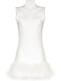 EDITORS'NOTES 16ARLINGTON's 'Umiko' dress is cut from lustrous satin and traced with wispy feathers at the mini hem - perfect if you're a bride who wants to dance the night away. Complement the high neckline with dainty drop earrings and a veil if you're wearing it to the town hall. SIZE & FIT - Fits true to size, take your normal size - Designed for a slightly loose fit - Mid-weight, slightly stretchy fabric - Model is 180cm/ 5’11” and is wearing a UK 8 DETAILS & CARE - Ivory satin - Concealed zip fastening at back - 100% polyester; lining: 100% polyester; trim: 100% feathers (Ostrich) - Dry clean - Ostrich: South Africa