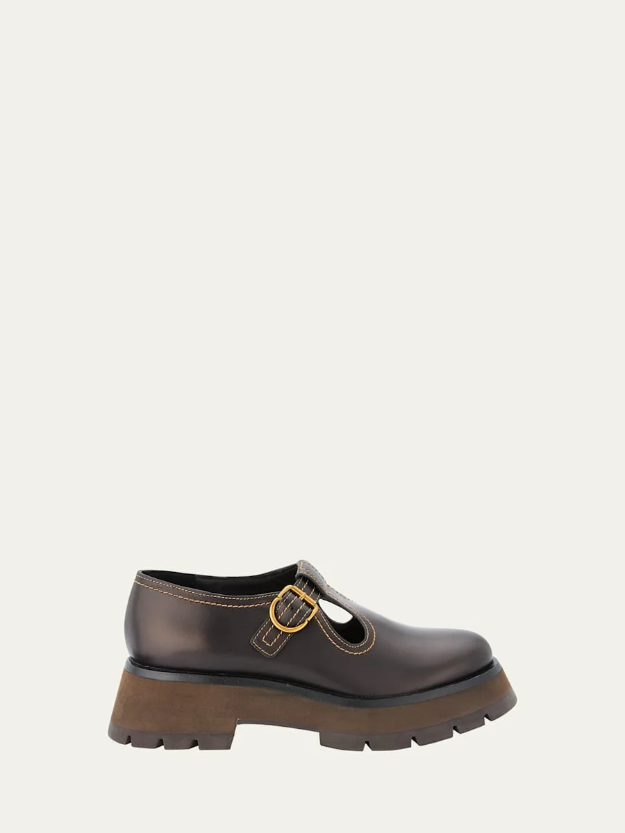 3.1 Phillip Lim "Kate" leather lug-sole loafers Flat heel Round toe Mary Jane buckle strap Rubber outsole Lining: Leather Professional cleaning recommended Imported Online Inquiries: BGS21_X6WL0| Store Inquiries: #5025494