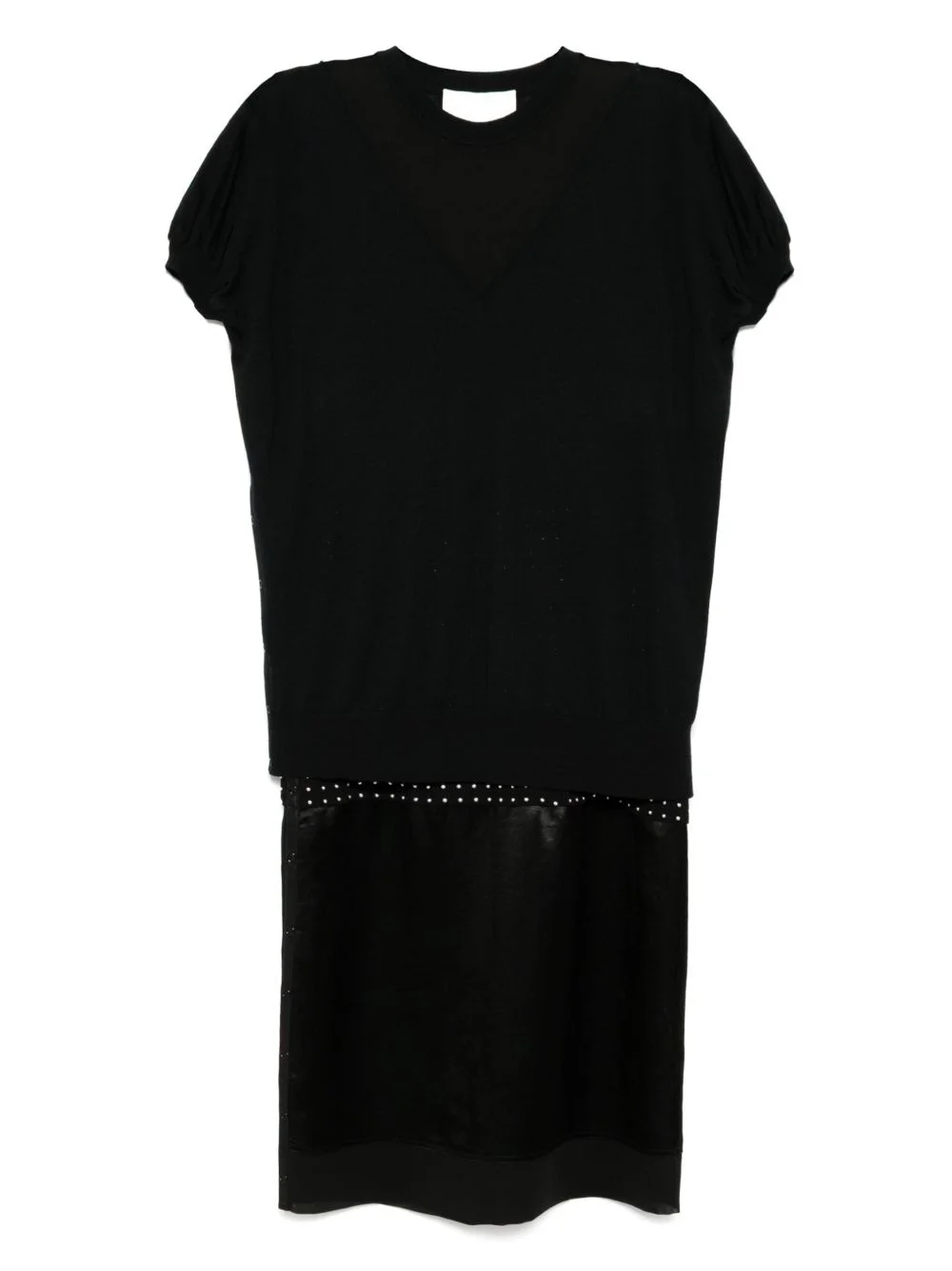 multi-combo embroidered dress Highlights - Black - Crew neck - Ribbed cuffs and hem - Semi-sheer construction - Silver-tone hardware Imported Composition Lining: Polyester 100% Outer: Modal 59%, Merino 41% SIZE & FIT Model measurements Height 5 ft 10 in(1.77 m) Bust/Chest 30.7 in(78 cm) Hips 35.82 in(91 cm) Waist 21.25 in(54 cm) FittingInformation This midi-length skirt is intended to be worn just below the waist The elasticated waist allows for a comfortable fit Made with a lightweight knit, this piece offers some stretch