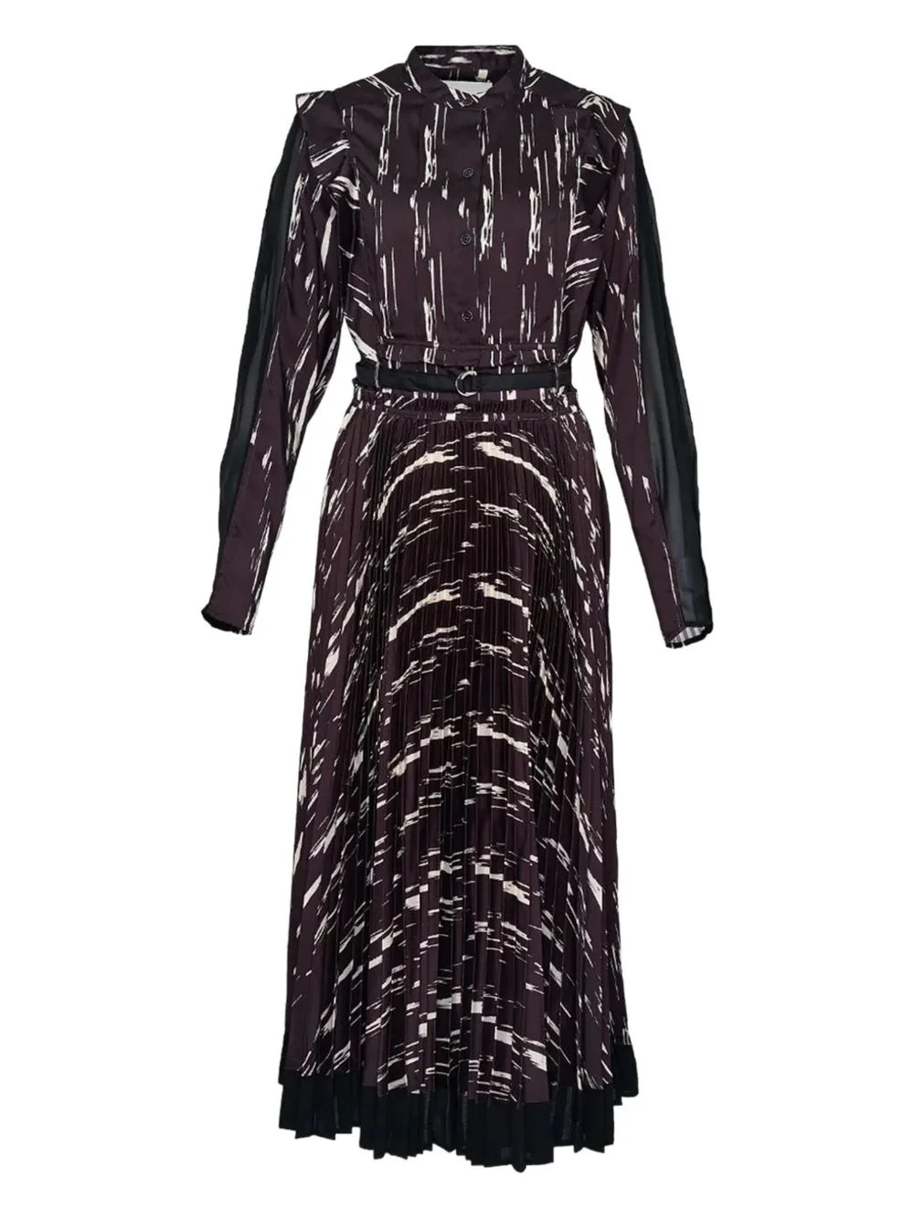 all-over graphic print dress Highlights - Espresso brown - Button fastening - All-over graphic print - Pleat detailing - Detachable belt - Long sleeves - Buttoned cuffs - Round neck Imported Composition Body: Polyester 100%
