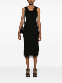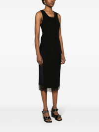 asymmetric lace-trim midi dres Highlights - Black - Asymmetric design - Contrasting-fabric panelled design - Fine ribbed panels - Satin-finish panels - Lace trim - Cut-out detailing - Scoop neck - Sleeveless - Side slits - Scallop hem - Mid-length Imported Composition Outer: Polyester 85%, Rayon 10%, Elastane 5% Lining: Acetate 90%, Polyester 10%