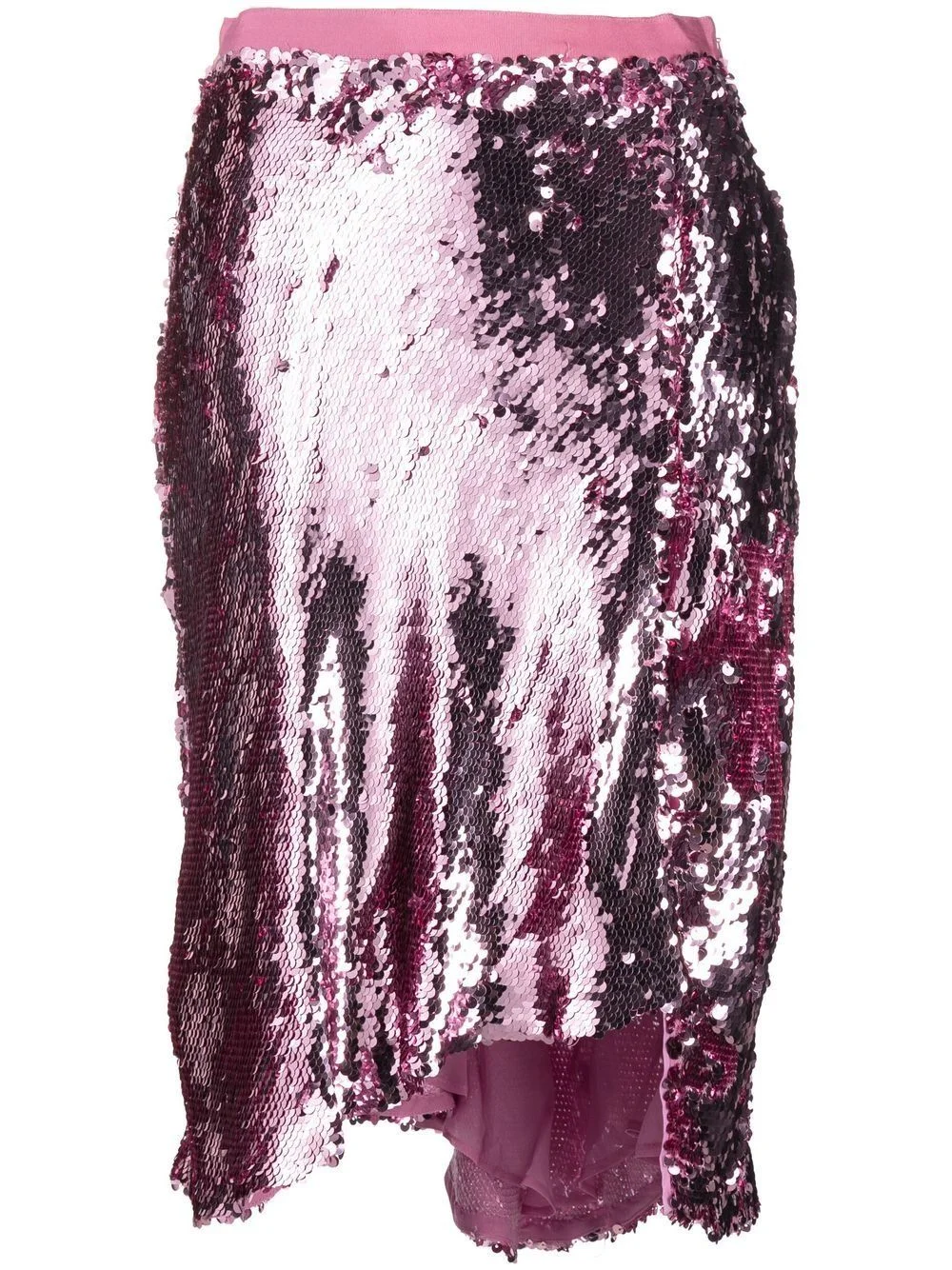 asymmetric sequinned midi skirt orchid purple asymmetric design sequin embellishment high-waisted elasticated waistband concealed side zip fastening Imported Composition Viscose 100%