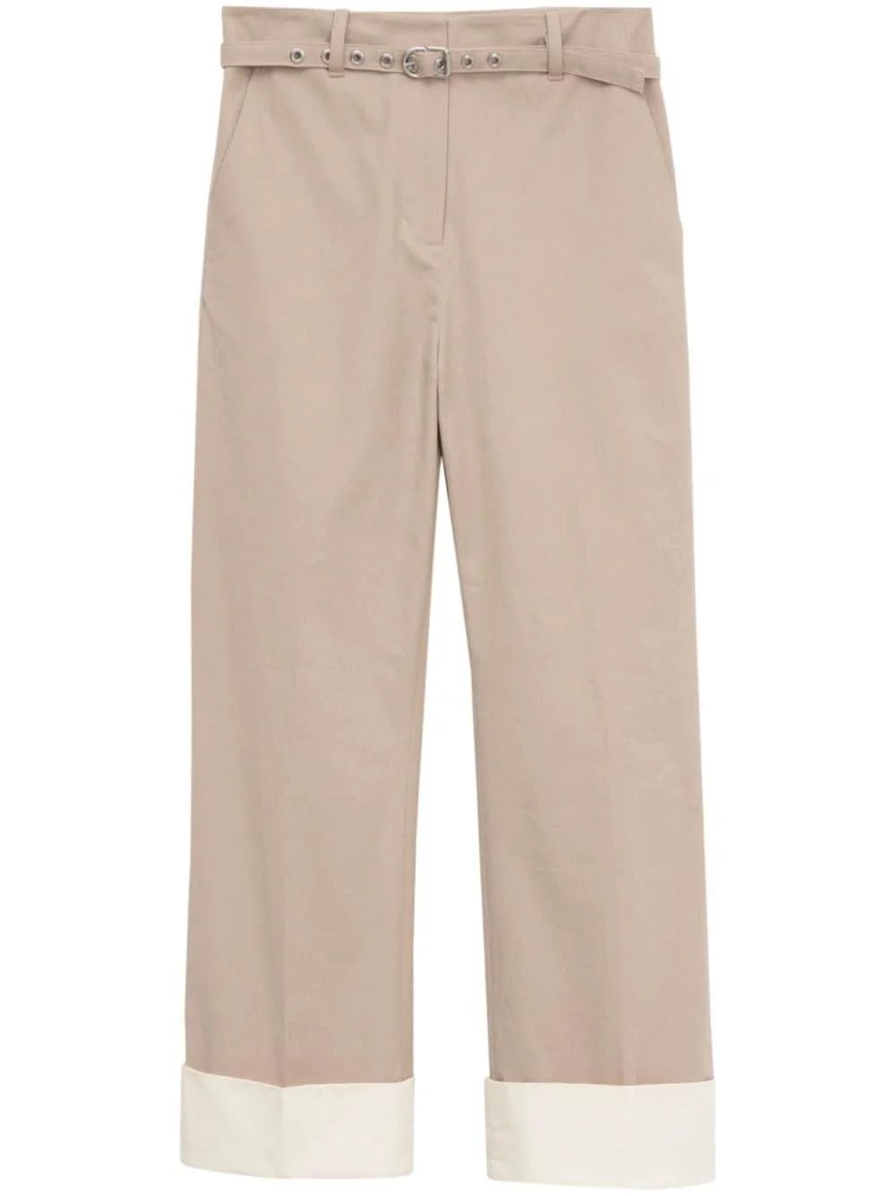belted cotton flared trousers Highlights - Light beige - Stretch-cotton - Belted waist - Slip pockets to the sides - Concealed front fastening - Rear welt pocket - Flared design - Turn-up hem Imported Composition Cotton 98%, Elastane 2%