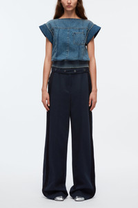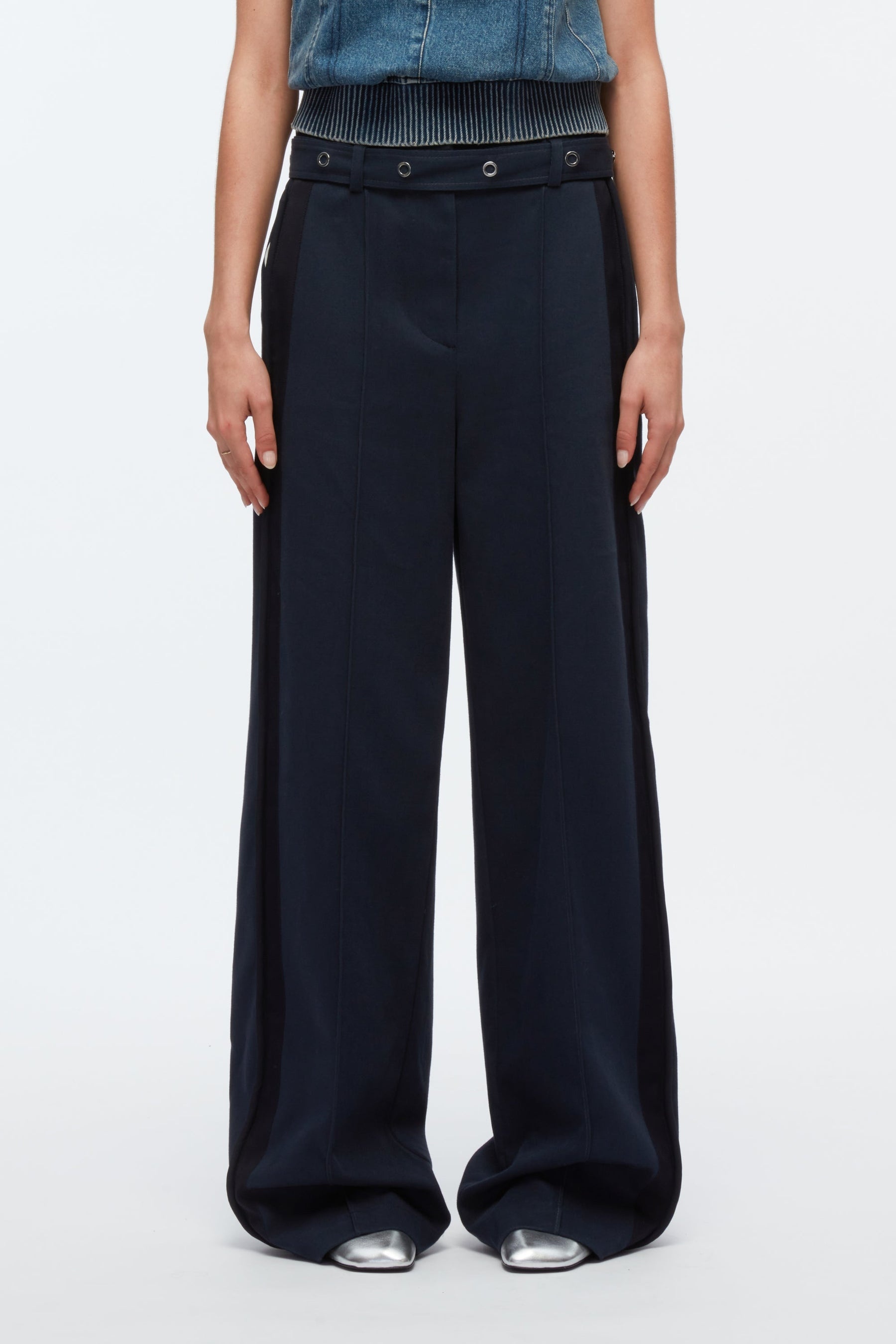 A nod to utilitarian styles, these cotton-twill pants are cut to a louche wide-leg silhouette and fitted with a waist belt that's dotted with silver-tone eyelets. They're pressed with sharp creases for a smart finishing touch. - Cotton twill - High waist with eyelet-embellished belt - Belt loops - Pressed creases - Slip side pockets - Patch back pocket Wide leg - Silver-tone metal hardware - Concealed front fastening - Relaxed fit 100% cotton Professional dry clean only - Model Height: 5'10', Bust: 30', Waist: 23', Hips: 34' and wearing a size 4