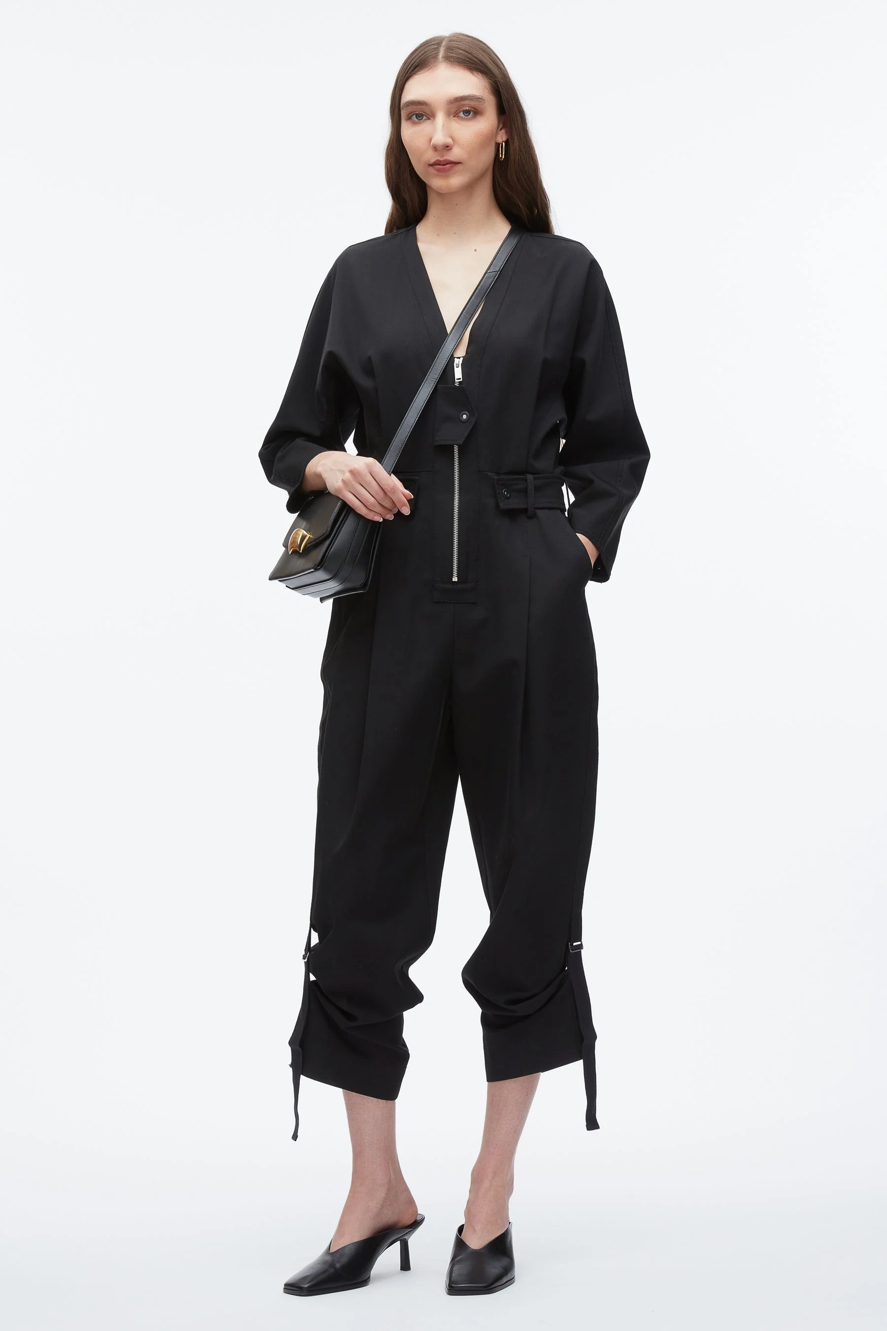 This utilitarian jumpsuit blends sharp tailoring with laid-back ease. Crafted from a soft cotton-viscose twill, it features a zip front, belted waist tabs, and adjustable drawcord hems for a customizable fit. Structured but relaxed, it’s made for all-day wear—polished, practical, and ready for wherever the day goes. - 55% Cotton, 45% Viscose - Model is 5'10', Bust: 30', Waist: 23', Hips: 34' and wearing a size 4 - Professional dry clean only