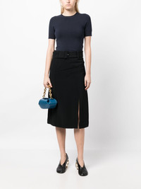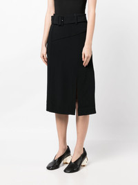 belted-waist high-waisted skirt Highlights - Black - Stretch-design - High-waisted - Belted waist - Straight hem - Side slit - Knee-length Imported Composition Viscose 66%, Acetate 32%, Elastane 2% SIZE & FIT Model measurements Height 5 ft 9 in(1.76 m) Bust/Chest 31.1 in(79 cm) Hips 35.03 in(89 cm) Waist 24.4 in(62 cm) FittingInformation This midi-length skirt is intended to be worn high on the waist Made from a midweight non-stretch fabric This piece fits true to size – take your usual size Washing instructions Dry Clean Only