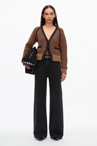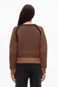 This cotton blend sweater is knitted in a chunky bi-color tuck stitch. Contrast button placket and trims, it has front hand pockets. Wear alone or as a breathable summer cover up. Relaxed, crop fit. - 47% Cotton 30% Polyamide 23% Polyester - Model is 5'10', Bust: 30', Waist: 23', Hips: 34' and wearing a size Small - Professional dry clean only