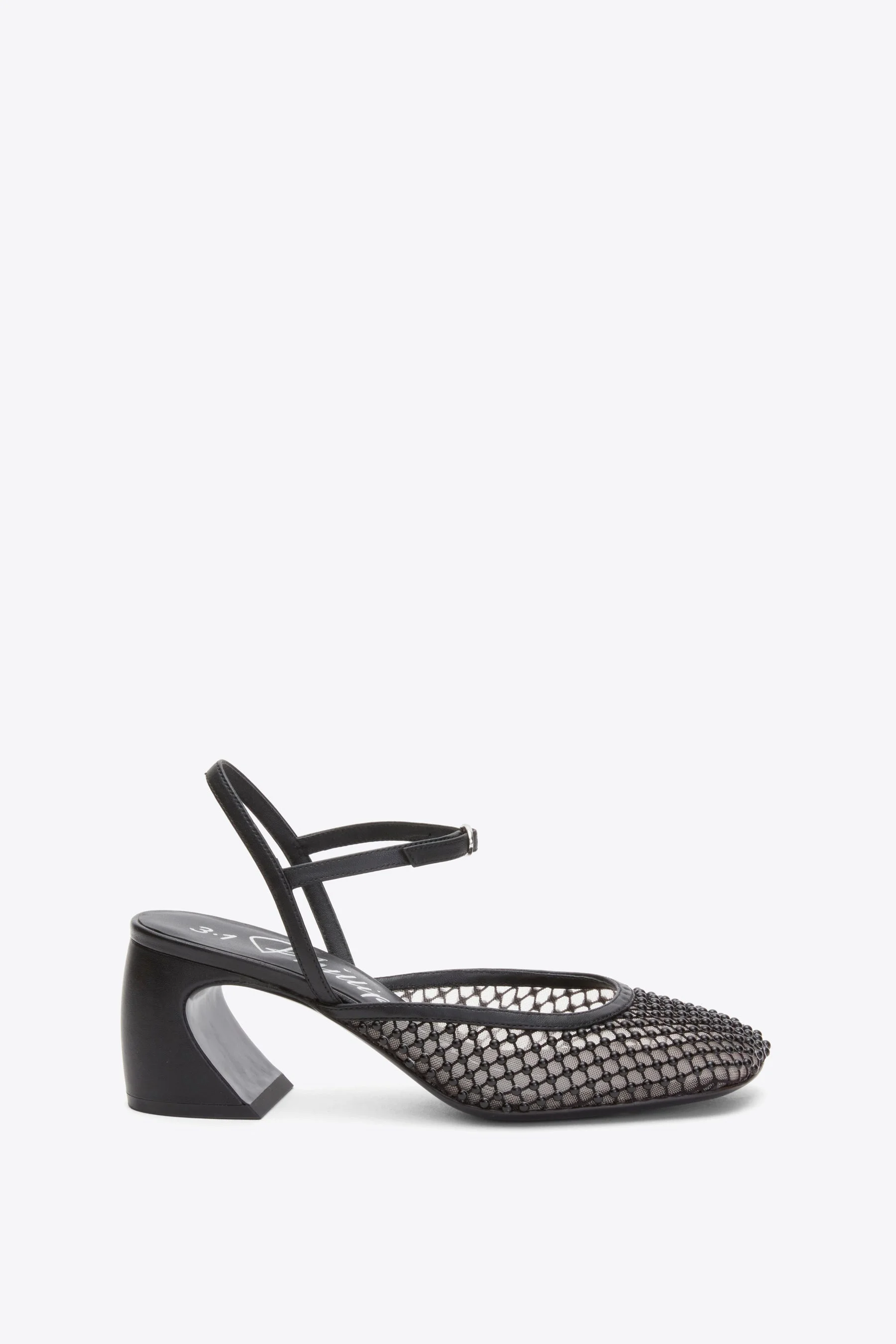 The ID Mary Jane is a standout in the ID Family, defined by its signature sculpted toe and 65MM crescent-shaped heel. This version elevates the classic silhouette with a mesh upper, adorned with cabochons for a modern, textural finish. - 100% Nylon - Outsole: Lacquered Leather - Lining: Sheep Leather - Heel: 65 MM | 2.56"