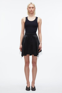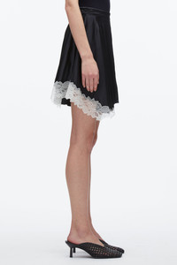 Modern sensuality meets a subversive edge in this flirty mini skirt. Cut in Italian liquid satin and trim with contrasting lace, it is a bold take on modern feminiity. Cut with a hankerchief hem, it is beautiful in movement, and perfect for occasion dressing. - 100% Viscose - Model is 5'10', Bust: 30', Waist: 23', Hips: 34' and wearing a size 4 - Professional dry clean only