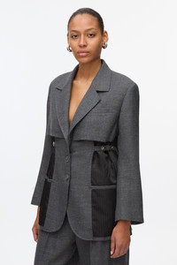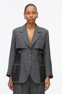 Menswear classics refined for a woman's body with a playful twist. Cut from beautifully airy Italian wool blend melange, and deconstructed with exposed shadow lining. Breaking tradition with the adjustable cinch tabs that can snatch the waist. Pair back with matching trousers. - 70% Wool, 30% Viscose - Model is 5'10', Bust: 30', Waist: 23', Hips: 34' and wearing a size Small - Professional dry clean only