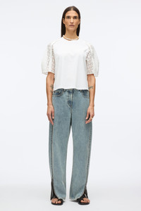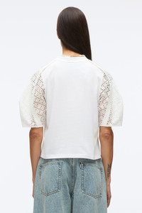 Elevating the everyday, this puffed-sleeve tee reimagines casual staples with a touch of romance. Crafted from soft cotton jersey, it features intricately detailed broderie anglaise sleeves that add texture and dimension, while the voluminous silhouette brings effortless sophistication. A refined take on a wardrobe essential, it’s perfect for pairing with denim or tailoring—where timeless elegance meets modern ease. - 100% Cotton - Model is 5'10', Bust: 30', Waist: 23', Hips: 34' and wearing a size 4 - Professional dry clean only