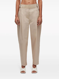 buckled tapered trousers Highlights - Khaki - Cotton blend - Poplin texture - Tapered leg - Pleat detailing - Side buckle fastening - Two side welt pockets - Two rear button-fastening jetted pockets - Full-length Imported Composition Cotton 70%, Polyester 30% Washing instructions Read Manufacturer Guidelines